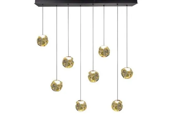 Hanglamp Melina van het merk Highlight combineert modern design met een luxueuze uitstraling. Het gouden, organische patroon van de acht lampenkappen creëert een speels effect in de ruimte. Perfect boven een eettafel, in een showroom of als speelse eyecatcher in een gang. De lamp is inclusief LED lichtbron en dimbaar via een externe dimmer. Ook is deze lamp in hoogte verstelbaar.