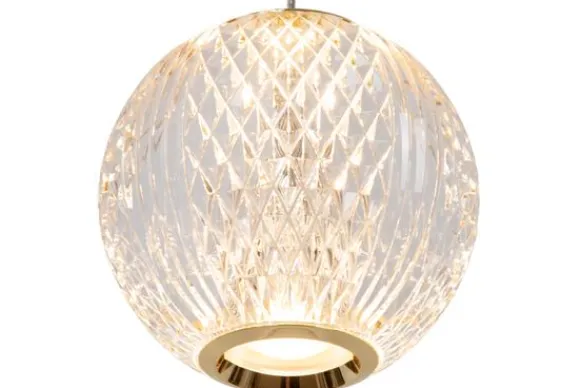 Hanglamp Cintra van het merk Lucide heeft bolvormige lampenkapjes uit transparante acryl die doen denken aan echt kristal door hun typerende groeven. Een heuse eyecatcher boven de eettafel of in je salon. Deze hanglamp is in hoogte verstelbaar en met een formaat van 11 x 11 x 9,8 centimeter passen de transparante lampenkapjes perfect in je ruimte. De messing details maken het plaatje compleet. Geniet van de geïntegreerde, dimbare ledlamp als extra troef van deze sprankelende lichtbron.