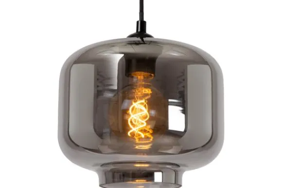 Hanglamp Medine van het merk Lucide is een moderne blikvanger voor in huis. Het lichtpunt is omgeven door een glazen stolp in gerookt glas. Dat maakt Medine extra smaakvol. Dankzij de reflecties van het glas krijgt de lamp zelf alle aandacht. Daarom kies je voor een optimaal effect bij voorkeur voor een filamentlamp. Bij de installatie stel je de lichtbron eenvoudig af op de gewenste hoogte (van 50 tot 156 centimeter) en sluit je hem eenvoudig aan op een dimmer. Monteren doe je in 1, 2, 3 door de bevestigingsplaat vast te schroeven aan het plafond.