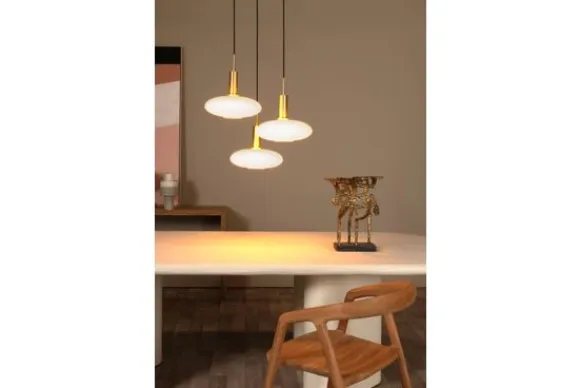 Hanglamp Singala van het merk Lucide kiest voor zachte gezelligheid. De combinatie van glas, metaal en messing creëert een elegante hanglamp met drie pendels die het bijzonder goed doet in moderne en traditionele interieur. Singala past zo in bijna elke ruimte van het huis. Afhankelijk van de kamer pas je de hoogte van de pendels individueel aan, van 70 cm tot 169 cm. (de hoogte is verstelbaar voor de installatie).