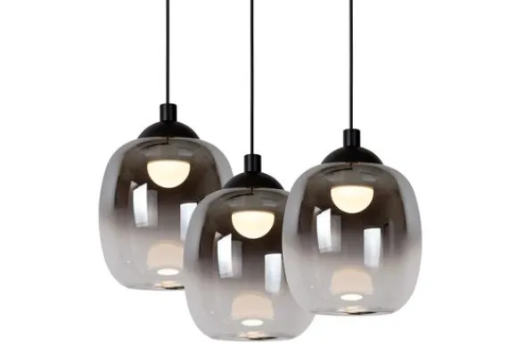 Hanglamp Tamino van het merk Lucide is een elegante keuze voor wie houdt van stijlvol design met een moderne twist. Met zijn vier bollen van gerookt glas en een minimalistisch zwart metalen plafondplaat, straalt deze lamp een verfijnde rust uit.
