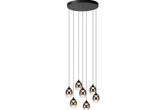 De zeven glazen bollen hangen aan verstelbare kabels, waardoor je zelf bij het ophangen de hoogte en compositie bepaalt – ideaal boven een eettafel of in een hoge ruimte. De geïntegreerde LED-lichtbronnen geven een warm licht en zijn dimbaar via een externe dimmer, zodat je eenvoudig schakelt tussen functioneel licht en sfeerverlichting.