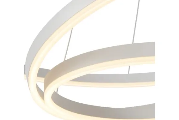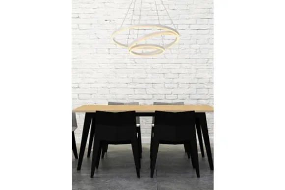 Hanglamp Triniti van het merk Lucide heeft drie ringen van licht die quasi verstrengeld zijn maar toch afgescheiden van elkaar. Deze hanglamp heeft haar naam niet gestolen. Triniti staat voor de heilige drievuldigheid. Hang de ringen voor de installatie op de gewenste hoogte (minimum 60 en maximum 135 centimeter van het plafond). Dankzij de fijne verbindingskabels tussen de bevestigingsplaat en de lichtbronnen zelf lijken de lichtbannen te zweven boven je tafel. Na aansluiting op een dimmer bepaal je zelf de lichtsterkte van de geïntegreerde led’s.