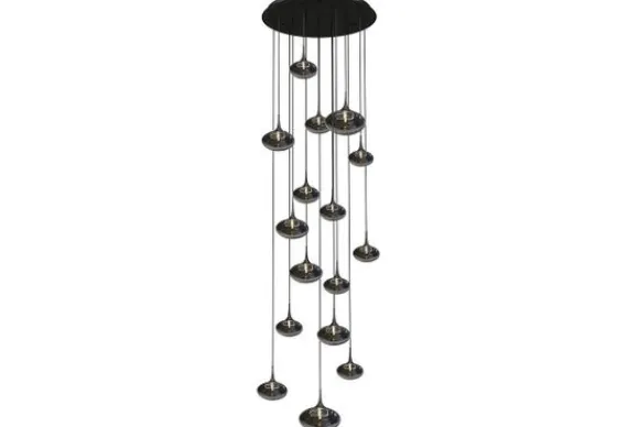 Hanglamp Paradiso van het merk Maretti Lighting is een indrukwekkende lamp. Deze bestaat uit een zwarte, ronde plafondbak met 16 smoke kleurige glazen bollen in verschillende maten, met daarop een zwarte houder. De snoeren zijn in hoogte verstelbaar tot maximaal 250 cm, dus je kan de lichtbronnen precies op de hoogtes hangen die jij wilt!