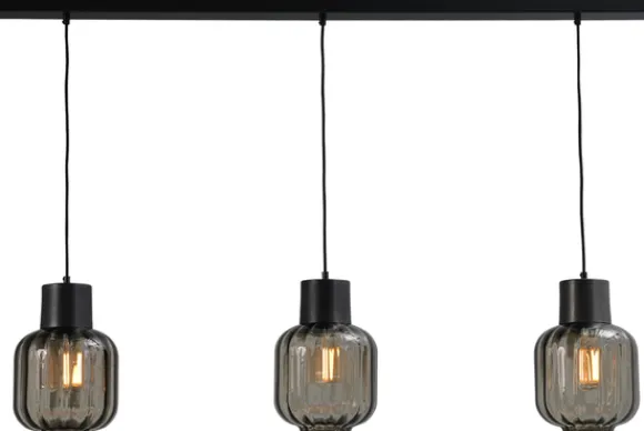 Hanglamp 2161-05-05-20-130-3 uit de Lett Rib serie van het merk Masterlight heeft drie lampen met een donkere glazen lampenkap. Doordat de lichtbron niet meegeleverd is, kun je zelf helemaal bepalen hoeveel licht je wilt en in welke kleur. De maximale wattage is 75 watt per lamp en het heeft een E27 fitting. De lamp is dimbaar via een exlusieve externe dimmer in combinatie met een compitabele lichtbron.