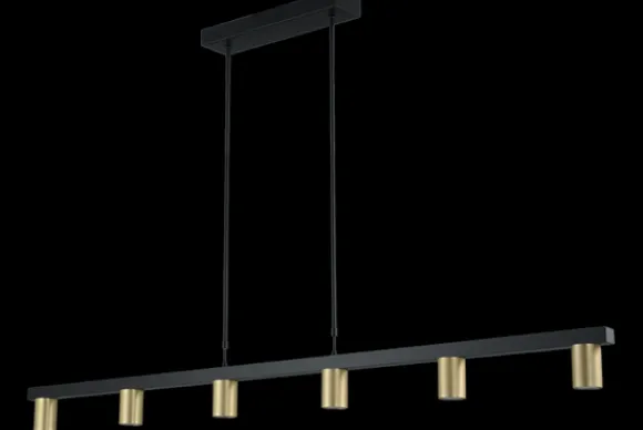 Hanglamp Bounce 2491-05-02-160-6 van het merk Masterlight is een eenvoudige maar stoere lamp. De zes lampenkappen zijn matgoud en hebben een hoogte van zeven centimeter met een diameter van vijf centimeter. De moderne lamp combineert mooi met de zwarte metalen afwerking en komt goed tot zijn recht in verschillende soorten ruimtes. Hang de hanglamp boven je eettafel, salontafel of in de serre… Er zit geen lichtbron bij deze lamp. Maak de lamp compleet door het lichtbronpakket erbij te kiezen in je winkelmand.