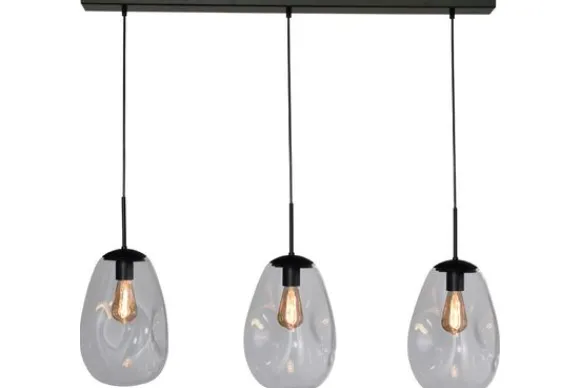 Hanglamp Lava 2761-05-100-3-00-60 van het merk Masterlight is een unieke lamp met een chique uitstraling. Het prachtige glas is mond geblazen in Italië. De basis is van metaal en uitgevoerd in de kleur zwart. De glazen lampenkappen hebben een diameter van 22,5 centimeter en zijn 32 centimeter hoog. Door de vorm en kwaliteit van het glas is deze hanglamp een echte eyecatcher! Het gedeukte glas geeft de lamp een speelse look die goed te combineren is in verschillende interieurs. Hang de lamp boven je eettafel of in de gang. De lamp heeft een E27 fitting en wordt zonder lichtbron geleverd.