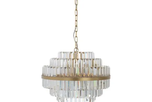 Hanglamp Desire 210848 van het merk Richmond Interiors is een opvallende eyecatcher in jouw interieur. De lamp is vervaardigd uit brass (mat goudkleurig staal) in combinatie met kristal. Het kristal zorgt voor een bijzondere lichtinval die de ruimte laat stralen.