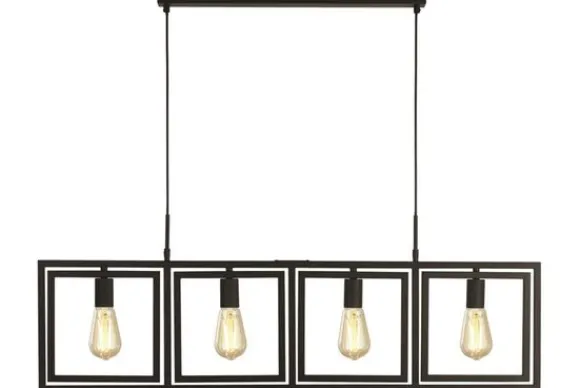 Hanglamp Plaza 23203-4BK van het merk Searchlight bestaat uit vier lichtbronnen. De lamp is gemaakt van metaal in een matzwarte afwerking. De Plaza is ontworpen met vier bewegende vierkanten, waardoor je verschillende aanzichten kunt creëeren afhankelijk van hun positie. De lamp is voorzien van een E27 (grote) fitting met een maximale wattage van 60 Watt. De lamp is dimbaar door middel van een externe dimmer en een bijpassende dimbare lichtbron.