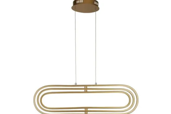 Hanglamp Clip 61775GO van het merk Searchlight is een unieke hanglamp. De drie ovalen kunnen afzonderlijk van elkaar verplaatst worden, waardoor je een unieke lichtverspreiding in de ruimte krijgt. De ovalen zijn gemaakt van aluminium in de kleur goud. De lamp heeft een melkachtige LED-verlichting. De LED-verlichting is een ‘3-staps dimbare lichtbron’ en kan door middel van je gewone aan/uit schakelaar op een andere kleurtemperatuur ingesteld worden, de kleurtemperatuur kan geschakeld worden tussen 3000K (warm wit), 4500K (koel wit) en 6500K (daglicht). De lamp is niet voorzien van een memorie functie, de stand van de kleurtemperatuur zal standaard bij de laagste Kelvin beginnen.