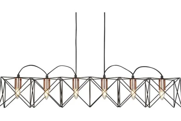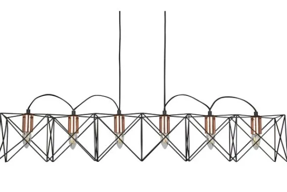 Hanglamp Anthea 8416-6BK van het merk Searchlight bevat zes lichten in de kleur Metal Black/Copper.