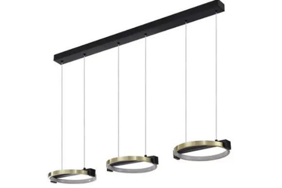 Hanglamp Aerial van het merk Searchlight is een echte blikvanger met een modern en luxueus karakter. De drie ringen in goud en zwart metaal geven de lamp een eigentijdse uitstraling die perfect past boven een eettafel of kookeiland. Dankzij het in hoogte verstelbare ontwerp stem je de lamp eenvoudig af op jouw ruimte en interieur.