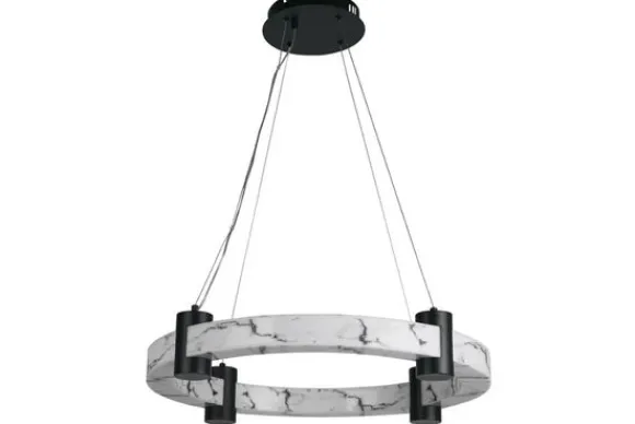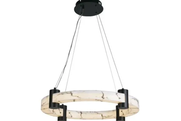 Hanglamp Moonbeam van het merk Searchlight heeft een opvallend ontwerp dat klassieke charme combineert met een moderne uitstraling. De zwarte metalen structuur en de marmerlook ring vormen een stijlvol geheel dat moeiteloos past binnen design, klassiek en modern ingerichte interieurs.