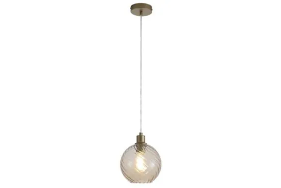 Hanglamp Radiance 44520CP van het merk Searchlight is een elegante lamp met een warme uitstraling. De ronde glazen kap heeft een subtiel gedraaid patroon dat zorgt voor een sfeervolle lichtverspreiding. De champagnekleurige tint van het glas brengt een zachte gloed in de ruimte en creëert een luxueus gevoel.