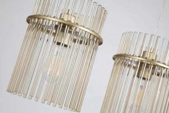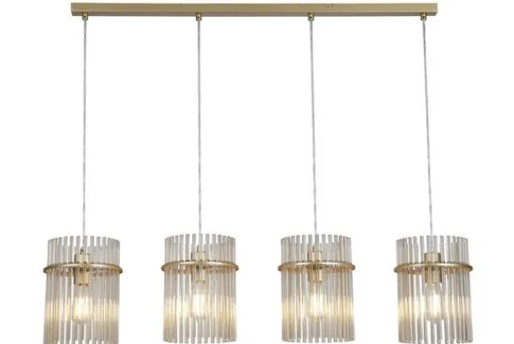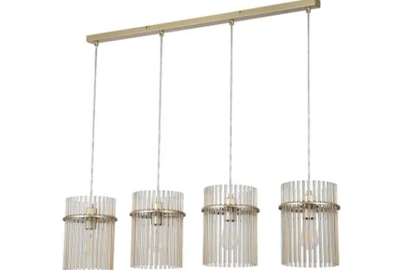 Hanglamp Swizzle 55620-4CP van het merk Searchlight is een verfijnd statementstuk dat luxe en elegantie combineert. De lamp is vervaardigd uit metaal en glas, waarbij de cilindervormige kappen bestaan uit fijne glazen buisjes die het licht zacht verspreiden. Het gouden frame zorgt voor een warme, stijlvolle uitstraling met een vleugje glamour.