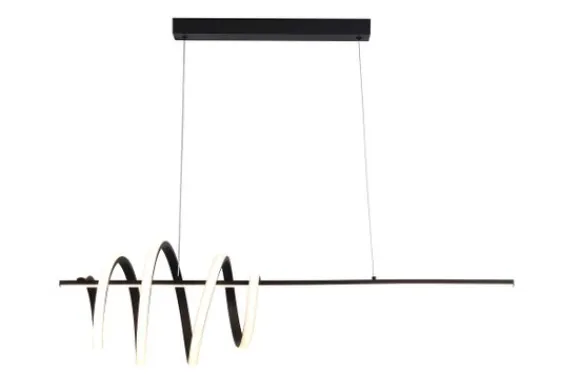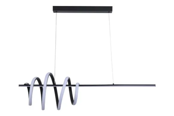 Hanglamp Sword 22510BK van het merk Searchlight is een moderne lamp met een speels ontwerp. De aluminium armatuur in matzwart heeft een golvende geïntegreerde LED-lichtlijn die zorgt voor een stijlvolle en eigentijdse uitstraling. Perfect boven de eettafel of in een modern interieur waar design centraal staat.