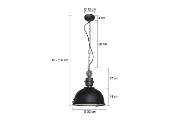 De lamp is voorzien van een E27 fitting en geschikt voor alle lichtbronnen tot 40 watt. Dankzij de ketting van 90 centimeter krijgt hanglamp Bikkel een authentieke en robuuste uitstraling.
