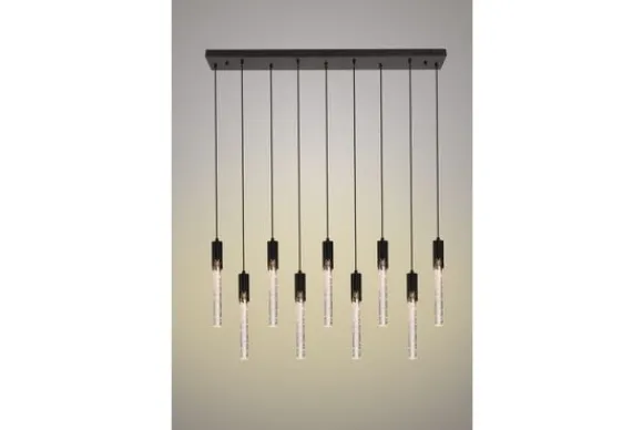 Hanglamp Maud van het merk Toms Luxury Lights is een luxe lamp met 9 G4 fittingen. De lamp is standaard uitgevoerd in Zwart. Het kristal glas heeft kleine bubbels erin, wat voor een speels effect zorgt. Je kunt zelf spelen met de uitstraling van deze lamp, door de lichtbronnen op verschillende hoogtes te hangen. De maximale hoogte is 150 cm.
