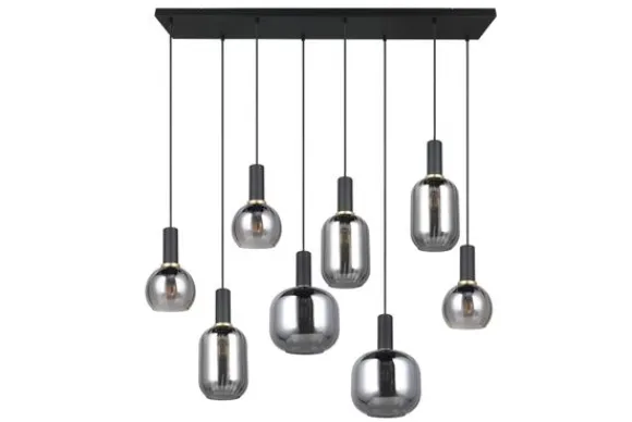 Hanglamp Diva van het merk Trio Lighting is een combinatie van mat zwart en verchroomd glas wat de lamp een elegante uitstraling geeft. De vorm en het ontwerp van het glas verspreiden het licht zacht en niet-verblindend, waardoor een mooi lichtspel ontstaat. Hang de lamp in de gang, boven je eettafel of hang er een aantal boven je eettafel. De lamp is een eye-catcher binnen elke woonstijl en geeft je woonruimte extra uitstraling waar je hem ook hangt. Deze lamp is exclusief de acht lichtbronnen met een E27 fitting. Voeg met gemak bij ‘Voeg toe aan winkelmand’ je lichtbronnen toe.