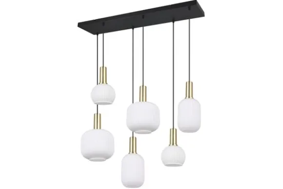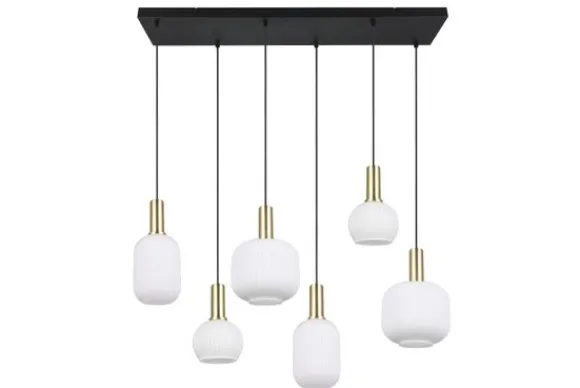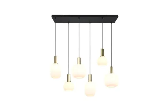 Hanglamp Diva van het merk Trio Lighting is een combinatie van mat messing en wit opaalglas wat de lamp een elegante uitstraling geeft. De vorm en het ontwerp van het glas verspreiden het licht zacht en niet-verblindend, waardoor een mooi lichtspel ontstaat. Hang de lamp in de gang, boven je eettafel of hang er een aantal boven je eettafel. De lamp is een eye-catcher binnen elke woonstijl en geeft je woonruimte extra uitstraling waar je hem ook hangt. Deze lamp is exclusief de zes lichtbronnen met een E27 fitting. Voeg met gemak bij ‘Voeg toe aan winkelmand’ je lichtbronnen toe.