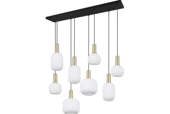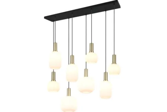 Hanglamp Diva van het merk Trio Lighting is een combinatie van mat messing en wit opaalglas wat de lamp een elegante uitstraling geeft. De vorm en het ontwerp van het glas verspreiden het licht zacht en niet-verblindend, waardoor een mooi lichtspel ontstaat. Hang de lamp in de gang, boven je eettafel of hang er een aantal boven je eettafel. De lamp is een eye-catcher binnen elke woonstijl en geeft je woonruimte extra uitstraling waar je hem ook hangt. Deze lamp is exclusief de acht lichtbronnen met een E27 fitting. Voeg met gemak bij ‘Voeg toe aan winkelmand’ je lichtbronnen toe.