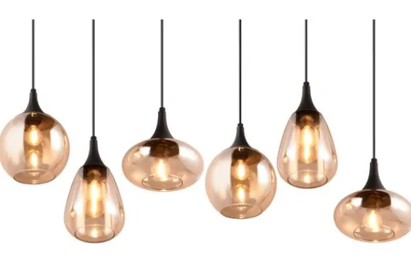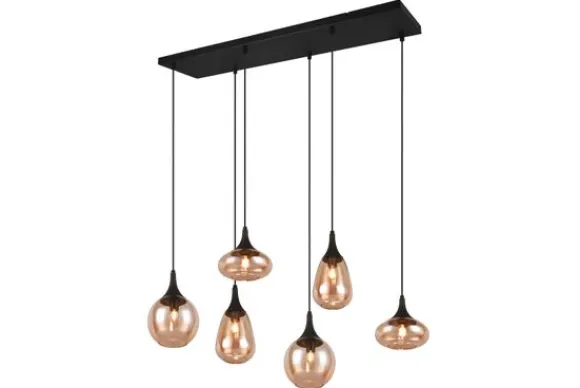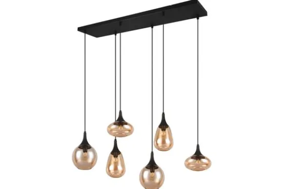 Hanglamp Lumina van het merk Trio Lighting is een buitengewone eye-cather in je woonruimte, dankzij de chique glazen lampenkappen. De combinatie van de verschillende vormen glazen lampenkappen en het metaal zorgen voor een prachtige en unieke lichtsfeer. De hanglamp past erg mooi binnen verschilldende stijlen, dankzij het matzwarte metaal en de amberkleurige glazen lampenkappen. Hang de hanglamp bijvoorbeeld boven je eettafel voor een moderne toevoeging. De lamp is exclusief lichtbronnen. De LEDlichtbron E14 fitting is geschikt voor deze lamp. Er zit geen lichtbron bij deze lamp. Voeg met gemak bij ‘Voeg toe aan winkelmand’ je lichtbronnen toe.