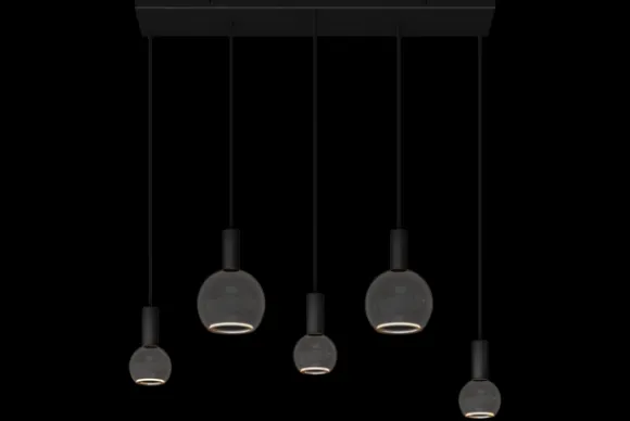 Hanglamp Segula 007 40076 van het merk Ztahl is een moderne lamp. De lamp heeft 5x een E27 fitting. De lamp heeft een rechte zwarte balk waar de lampen aan hangen. Deze brede hanglamp ziet er prachtig uit boven bijvoorbeeld een eettafel. Door de verschillende hoogtes geeft deze lamp een speelse uitstraling.