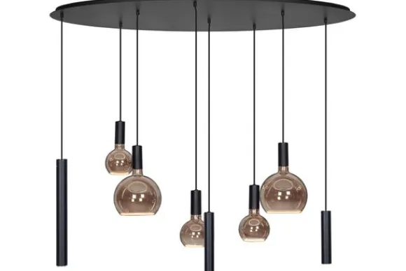 De lamp wordt geleverd inclusief de cilindervormige kappen en exclusief de glazen kappen. De glazen bollen functioneren als lichtbron en zorgen voor een warme en sfeervolle uitstraling.