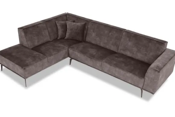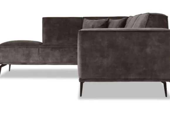 Hoekbank Iris van het merk Design Italia is beschikbaar in alle kleuren en in verschillende materiaalsoorten zoals stof, velvet en rundleder. Je kunt kiezen uit diverse afmetingen. Ook kun je kiezen voor een gladde rugleuning of intrekkiningen in de rug en voor een geknepen naad of een dichte naad. Dit is een strakke bank door de rechte, vaste kussens. De bank staat op metalen knikpoten waardoor het een luchtige uitstraling heeft.