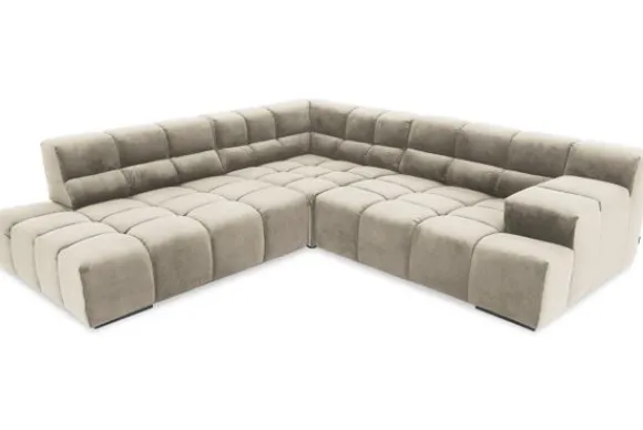 Bankstel Salvatore van het merk Studio Ralph is een luxe blikvanger met een robuuste, unieke uitstraling dankzij de vaste kussens en het blokkenpatroon.
