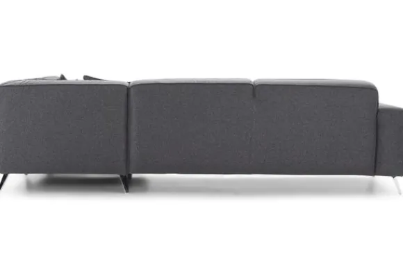 Deze hoekbank wordt standaard uitgevoerd met RVS kleurige metalen poten en exclusief sierkussens.