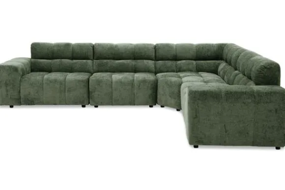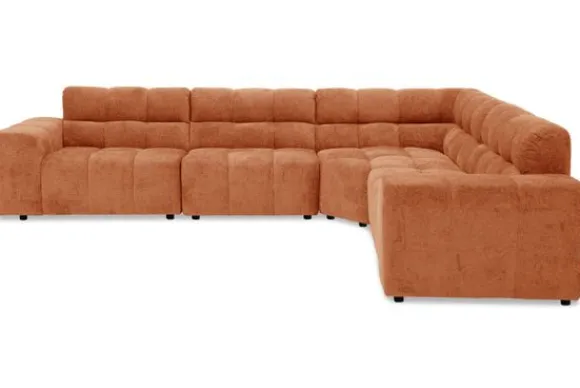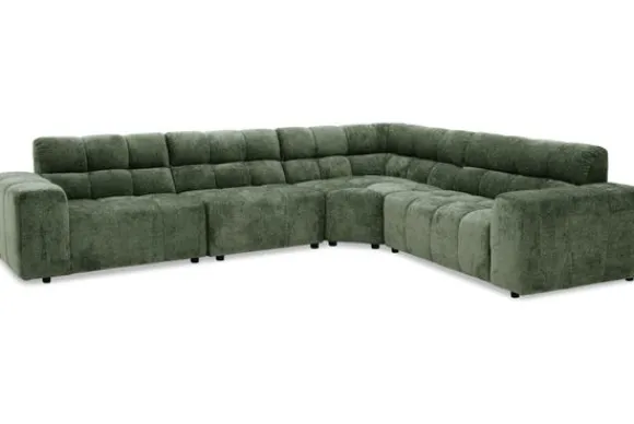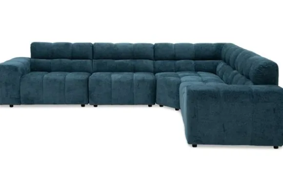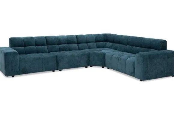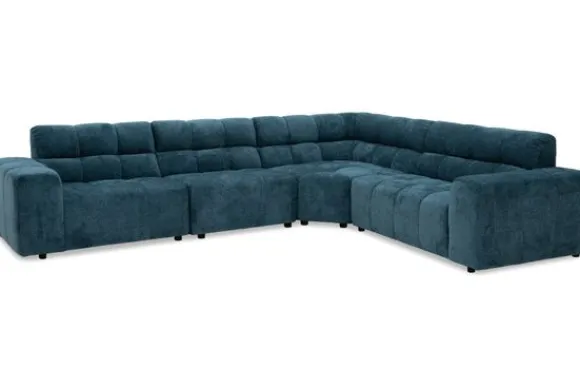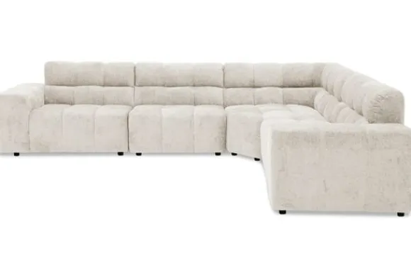 Hoekbank Cantonada van het merk Kenzo combineert luxe met veelzijdigheid. De diepe zit en zachte stoffering zorgen voor ultiem comfort, terwijl de moderne vormgeving met zijn blokstructuur de bank een stijlvol karakter geeft.