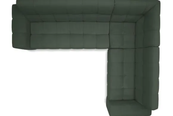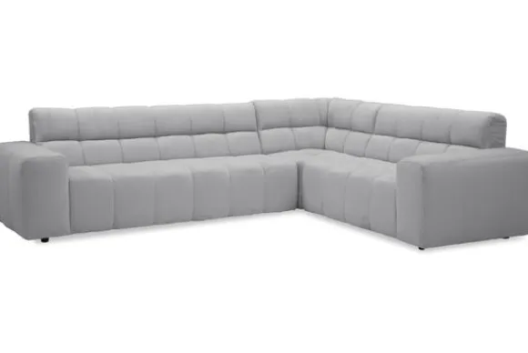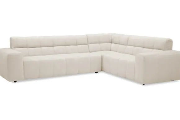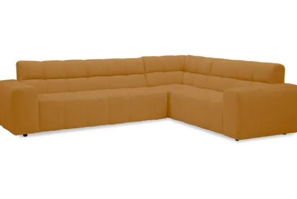 Hoekbank Cantonada van het merk Kenzo combineert luxe met veelzijdigheid. De diepe zit en zachte stoffering zorgen voor ultiem comfort, terwijl de moderne vormgeving met zijn blokstructuur de bank een stijlvol karakter geeft.