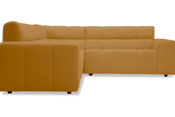 Deze hoekbank is verkrijgbaar in een breed scala aan kleuren en materialen. Denk aan rundleder of stoffen als velvet en bouclé. Hierdoor past de bank in uiteenlopende interieurs.