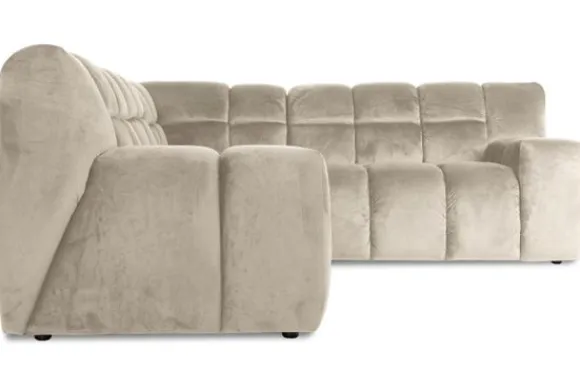 Je kunt kiezen uit verschillende materialen, waaronder stoffen als velvet en boucle. Daarnaast is de bank verkrijgbaar in uiteenlopende kleuren.