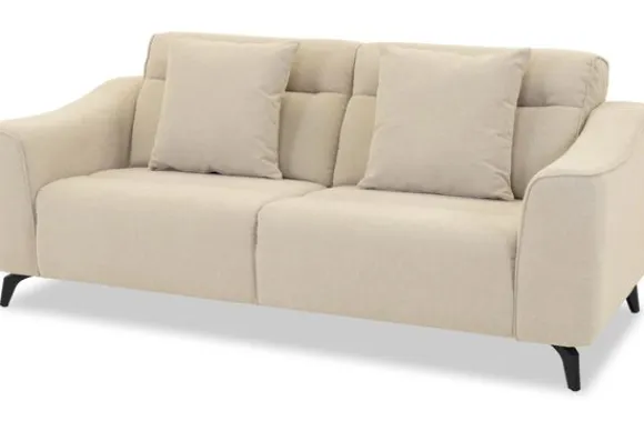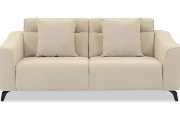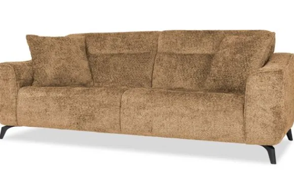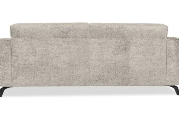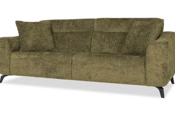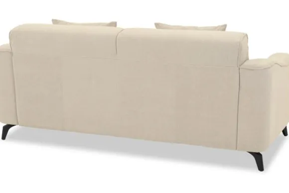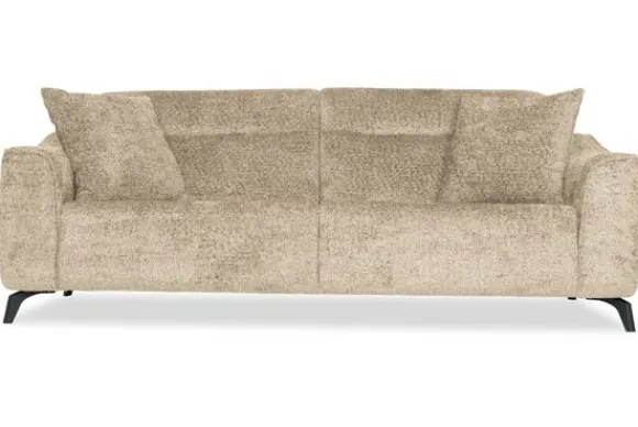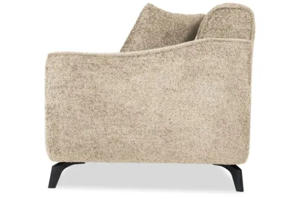 Met zijn glooiende armleuningen en speelse intrekking in de rug- en zitkussens is deze bank een stijlvolle toevoeging aan elke kamer. Sergio is uitgerust met nosag vering en een vulling van hoogwaardig koudschuim, wat zorgt voor langdurige ondersteuning en optimaal zitcomfort. De bank staat stevig op zwarte, metalen poten en is afgewerkt met een geknepen naad.