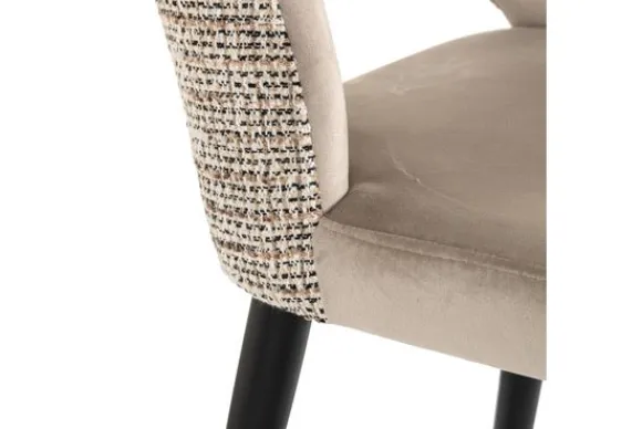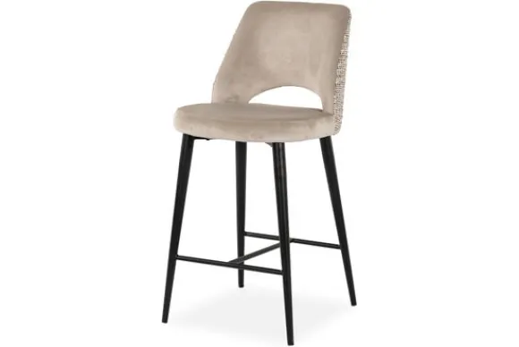 Barkruk Tabitha 213308 van het merk Richmond Interiors is gestoffeerd met Be Trendy 01 Nature en Quartz 903 Khaki. Be Trendy is een mooie geweven multi-color stof die bestaat uit draden die horizontaal en verticaal door elkaar heen geweven zijn als een raster. De stof heeft een strakke, luxueuze uitstraling. Velvet is makkelijk te reinigen, slijtvast en goed bestendig tegen bijvoorbeeld nagels van huisdieren. Verder heeft deze stof een mooie vleug, wat zorgt voor een chique en hippe uitstraling. De barkruk is voorzien van een voetensteun, hierdoor kun je je voeten erop laten rusten en krijg je een optimaal zitcomfort.