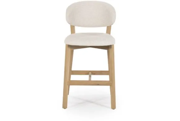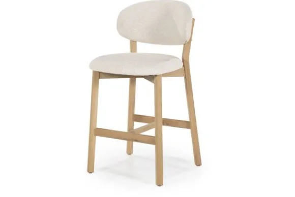 Barkruk Mikky 96256 van het merk Eleonora, is uitgevoerd in de stof Beige Moon met pootkleur Naturel.