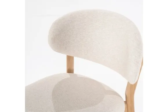 Deze stijlvolle stoel combineert elegantie met comfort en is een perfecte aanvulling voor elk interieur. De poten zijn gemaakt van hoogwaardig eikenhout, wat zorgt voor een stevige en duurzame constructie. Het zitvlak en de rugleuning zijn bekleed met een zachte, neutrale stof. De afgeronde rugleuning en het minimalistische ontwerp geven de stoel een tijdloos karakter, ideaal voor zowel eetkamers als woonruimtes. De combinatie van natuurlijk hout en de gladde bekleding maakt deze stoel tot een uitstekende keuze voor ieder huis.