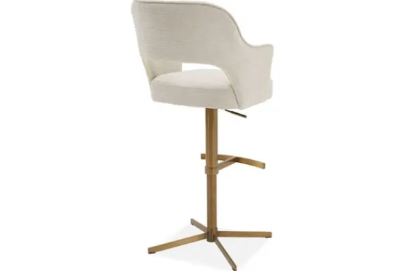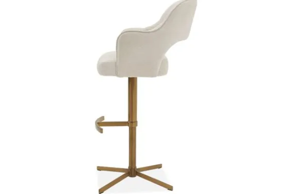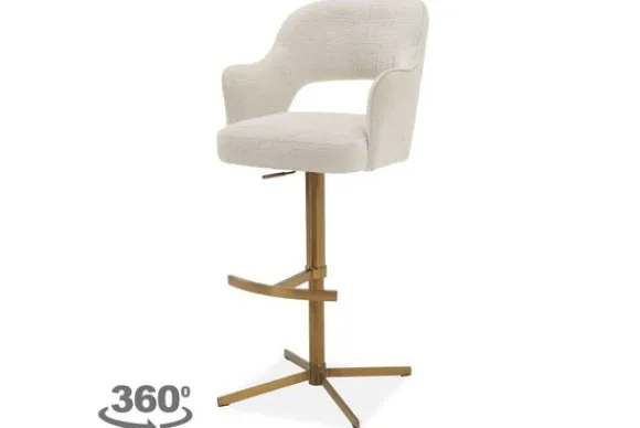 Barkruk Lardy van het merk Opulenza is een stijlvolle en moderne barkruk met ronde vormen, een gladde rugleuning en een metalen sterpoot met voetensteun. De kruk is 360 graden draaibaar, waardoor je moeiteloos beweegt aan keukeneiland of bartafel.
