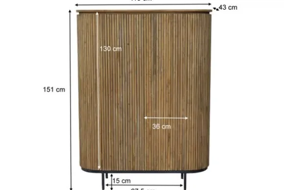 Bergkast Lausanne van het merk Livingfurn is een elegante opbergkast met een rustige en moderne uitstraling. De ovale vorm en subtiele houten lijnen geven de kast een verfijnd karakter, waardoor hij mooi tot zijn recht komt in de woonkamer of eetkamer binnen een modern of Scandinavisch interieur.
