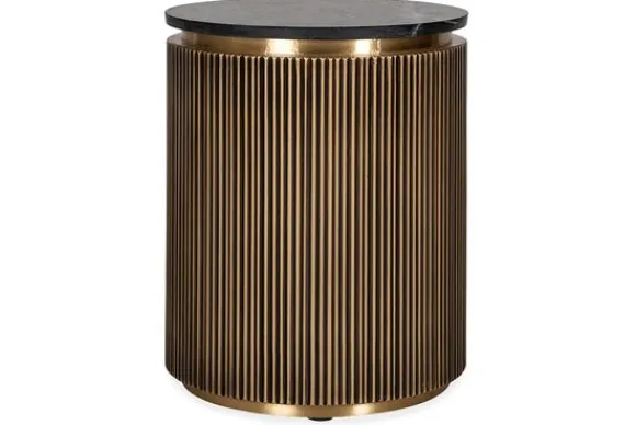 Bijzettafel Ironville 210756 van het merk Richmond Interiors is een unieke bijzettafel met een jaren 60 stijl dat in een nieuw jasje is gestoken. De tafel heeft een luxe uitstraling door zijn strakke vorm gecombineerd met het ribbelmotief in de antieke messingkleur. Het blad is gemaakt van marmer, dit is een duurzame steensoort en heeft een luxe en stijlvolle uitstraling. De productie van marmer verloopt als volgt: uit één grote marmeren plaat worden meerdere bladen gesneden, de patronen (aders) en kleur zijn niet overal hetzelfde. Dit zorgt ervoor dat elk blad een verschillende tekening en kleur heeft, dit maakt elk blad uniek en verschillend.