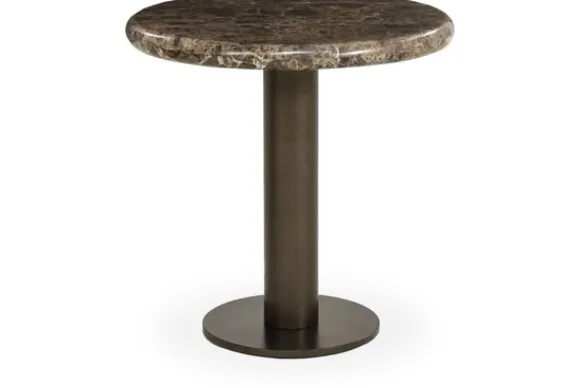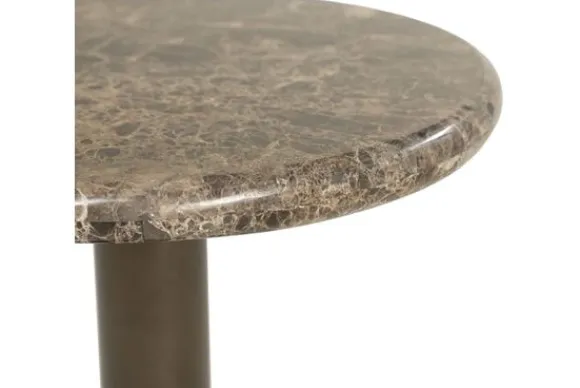 Bijzettafel Luigi 96512 van het merk Eleonora is een compacte tafel met een luxe uitstraling. Het ronde tafelblad van bruin marmer laat een rijk patroon zien dat elke tafel uniek maakt. Het stevige metalen onderstel geeft de tafel een moderne en strakke afwerking.
