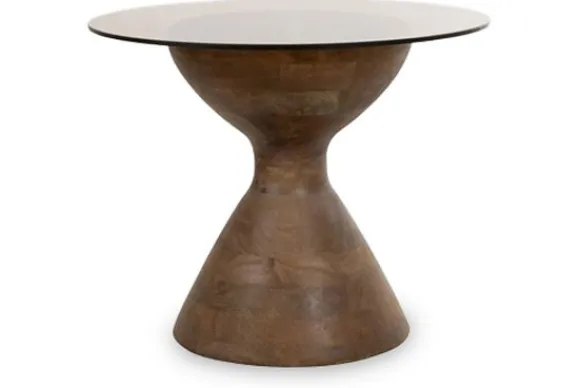 Bijzettafel Yves CGC.ET.0009 uit de Couture collectie van het merk MySons combineert mangohout met een smoked glass tafelblad. Mangohout kun je herkennen aan de vele kleurschakeringen en ongelijkheden in het oppervlakte van het hout, waardoor geen enkel meubelstuk hetzelfde is. Mangohout is een duurzame houtsoort. Deze tafel heeft een kegelvormige poot en een blad in een organische vorm.