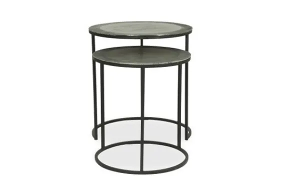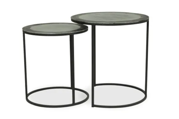 Bijzettafelset Sochi AAC.CT.0015 van het merk MySons uit de Allure Alu Collection is gemaakt van aluminium, heeft een zwart metalen poot en een blad in de kleur raw nickel black platina. Deze set bestaat uit twee tafels met de volgende afmetingen: H46 x B41 x D41 cm en H52 x B49 x D49 cm.