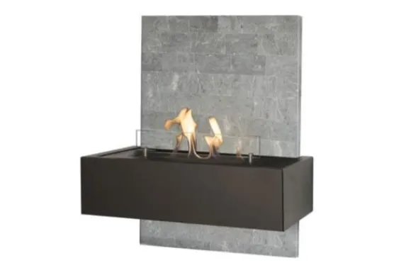 Deze haard wordt standaard uitgevoerd met een natuurstenen paneel en een bio ethanol brander.