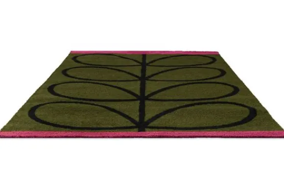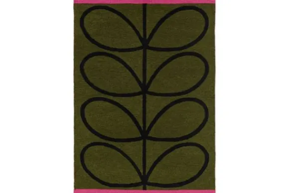 Buitenkleed Linear Stem Olive Outdoor 464407 van het merk Orla Kiely is een echte sfeermaker voor binnen én buiten. Het design is strak en speels tegelijk, grote zwarte lijnen vormen een bladmotief op een olijfgroene ondergrond, afgewerkt met een roze rand.