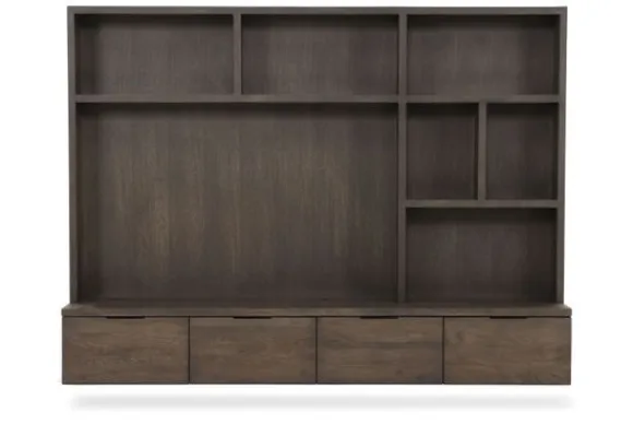 De hangkast beschikt over zes open vakken voor het presenteren van woonaccessoires en decoratie. Daarnaast zijn er vier lades aanwezig die zijn uitgevoerd met een softclose systeem. Deze indeling zorgt voor een prettig evenwicht tussen open en gesloten opbergruimte.
