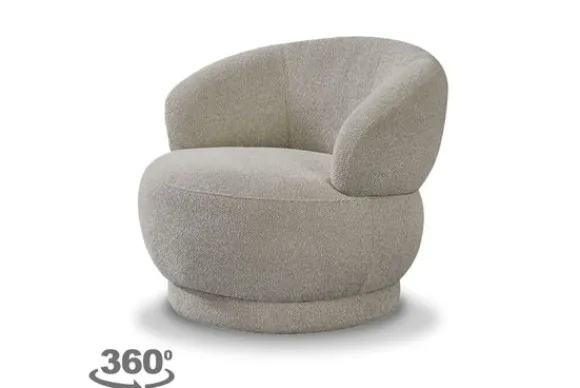Draaifauteuil Alvito GA-80.209 van het merk Label51 is een opvallende stoel met ronde vormgeving. De fauteuil is bekleed met de stof Royal Boucle Mushroom 170 en heeft een praktische draaifunctie.