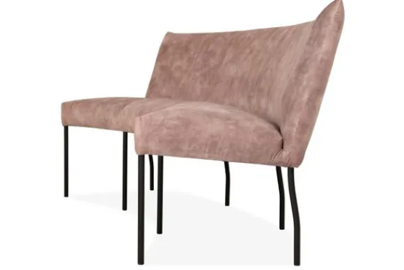 Deze eetbank wordt standaard geleverd met zwarte rechte poten en een dichte naad. Er kan gekozen worden voor andere poten of een geknepen naad onder “Stel jouw eetbank samen”.